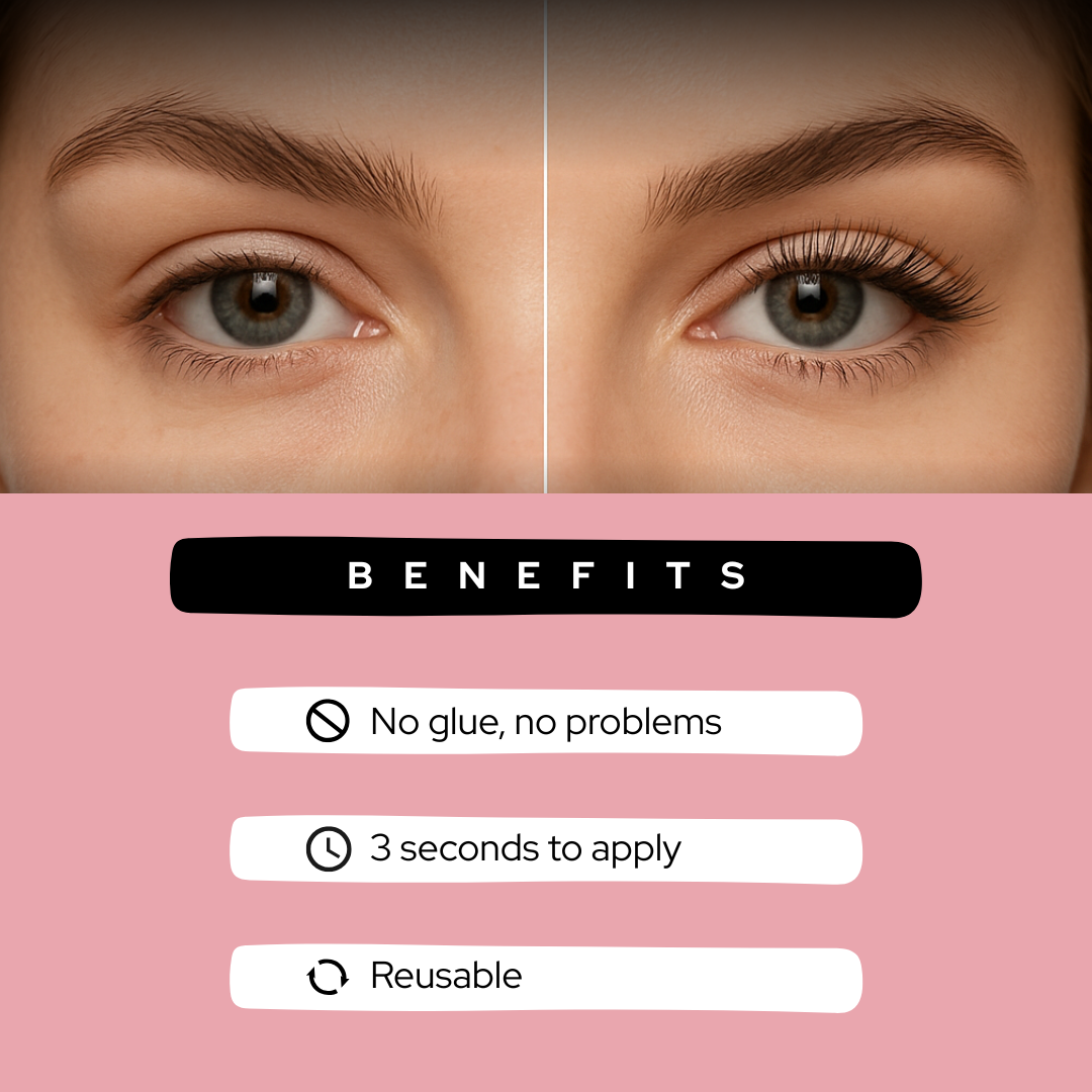 Imagine starting your day with lashes that look professionally done — no sticky glue, no smudged makeup, no lashes lifting at the corners.